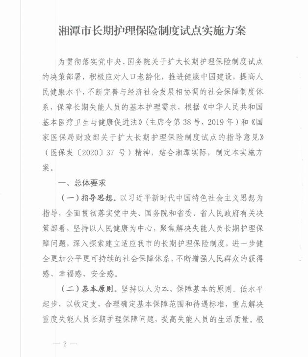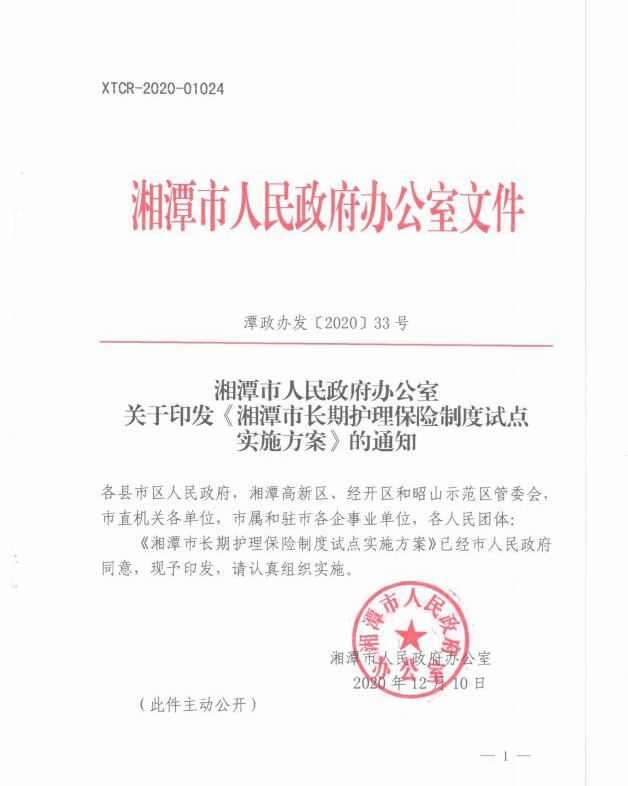 潭政辦發(fā)〔2020〕33號湘潭市人民政府辦公室關(guān)于印發(fā)《湘潭市長期護(hù)理保險制度試點(diǎn)實(shí)施方案》的通知