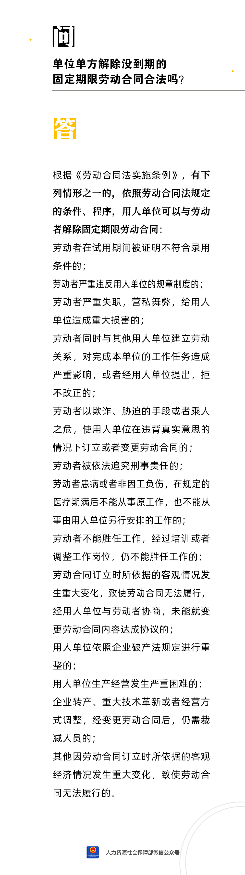【人社日課·7月28日】單位單方解除沒到期的固定期限勞動合同合法嗎?